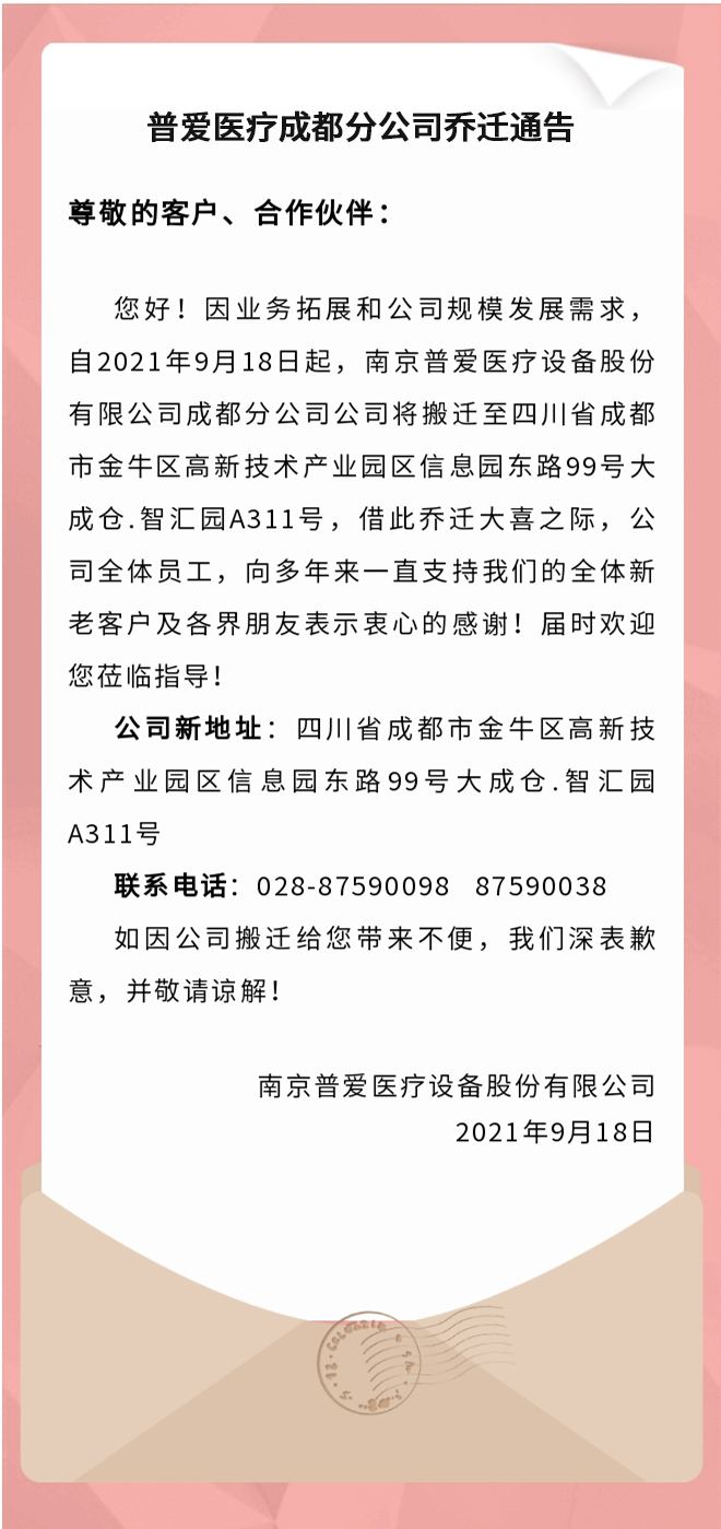 普愛醫(yī)療成都分公司喬遷通告